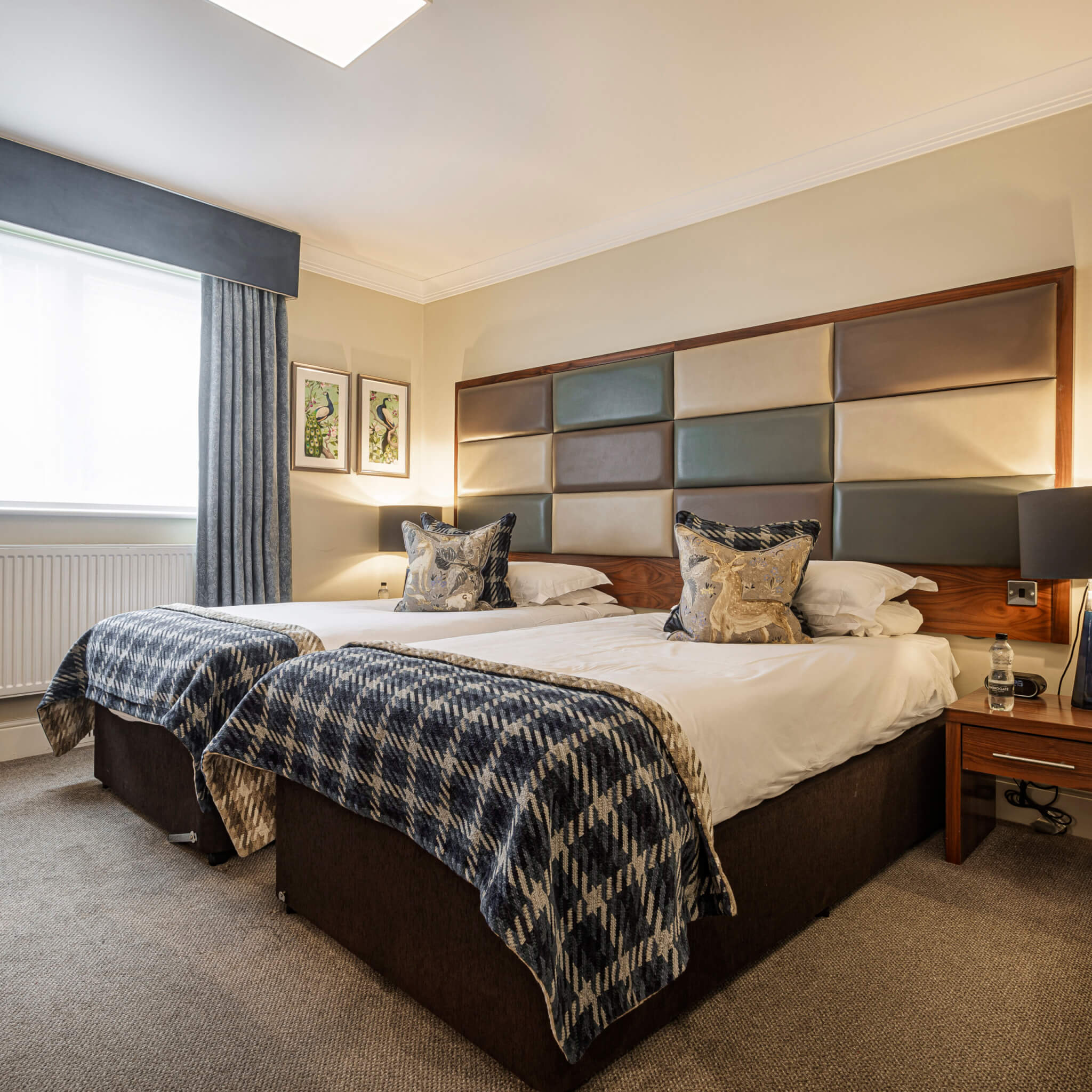 Premium Rooms offer tranquility with premium linens, soft pillows and comfortable mattresses. All rooms offer high speed wifi, H2K of Harrogate botanicals, hairdryer, smart TV, Roberts radio, premium teas and coffee in room, premium biscuits and British spring water