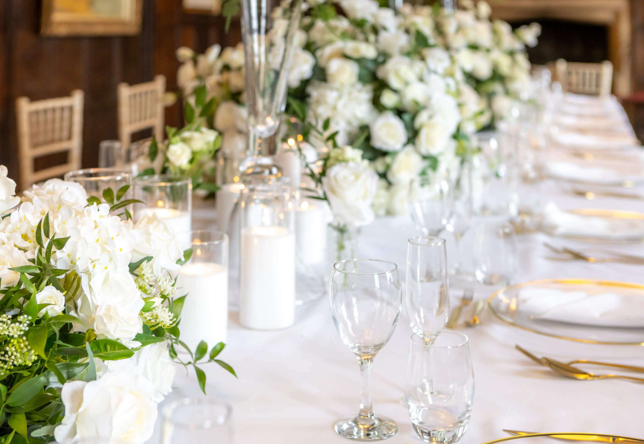 - Crisp white table linen